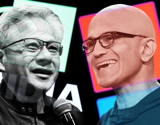 Nvidia CEO Jensen Huang and his counterpart Satya Nadella at Microsoft. – ELENA SCOTTI/WSJ Nvidia and Microsoft could soon become $4 trillion companies,