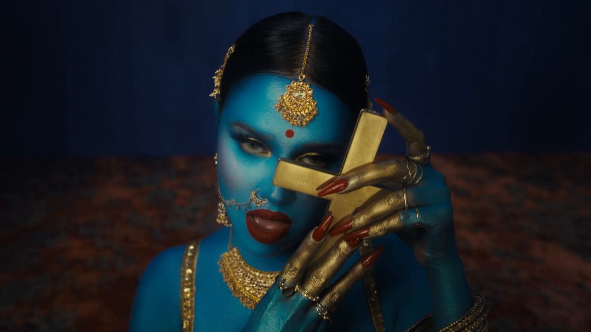 A music video released by Indian-origin rapper ‘Tommy Genesis’ has kicked up a storm online. Titled ‘True Blue’, the music video depicts the Canadian citizen, who calls herself a “fetish rapper”, painted in blue (associated with the Gods Krishna and Vishnu, and Goddess Kali) and decked up in gold jewellery while brandishing a gold-painted gun and occasionally holding and licking a gold-painted cross or placing it in her nether regions.